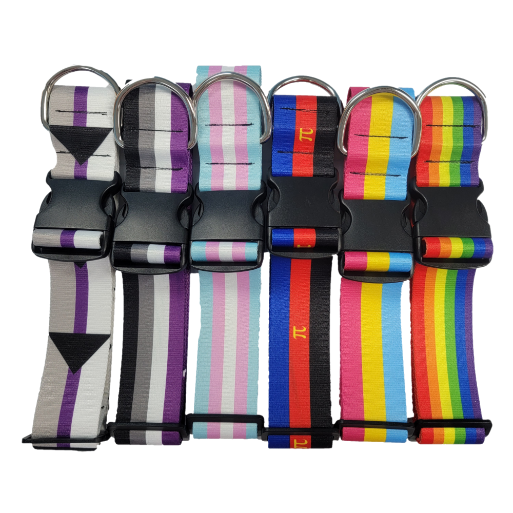 These are printed in-house, and can be printed with 1-3 different pride flags per collar (in a repeating alternating pattern if you select more than one). Printed on both sides using sublimation printing, which won't bleed or rub off on your fursuit.